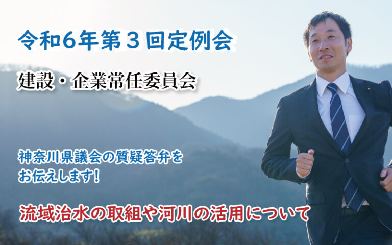 会議日:令和6年12月10日【建設・企業常任委員会】 流域治水の取組や河川の活用について ●桂川・相模川流域協議会https://www.katurasagami.net 第2回流域治水かながわ2023 神奈川県HP:h … 続きを読む ① 流域治水の取組や河川の活用について【令和6年第3回定例会】