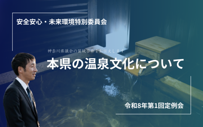 わたしの地元の厚木市・愛川町でも、もともと日帰りをやっていましたけれども今は入れなくなってしまったという話も最近聞くようになってきたと思います。そうした中、厚木市の商工会議所なども、温泉旅館を日帰り施設として適用できるような施設整備の補助を要望していることもありますし、規制と補助はセットというところもありますので、県としては難しい部分もあるのかもしれませんが、県も未病の改善という取組みの中で県内各地の温泉を紹介していますし、「プチ湯治」という形で推奨もしていますので、地域の温泉を残すという意味で、温泉文化につながる部分において取り組みをお願い致します。